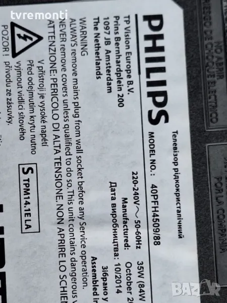 подсветка от дисплей TPT400LA-J6PE1 REV:SC1M от Телевизор PHILIPS модел 40PFH4509/88 → Обява 49972417