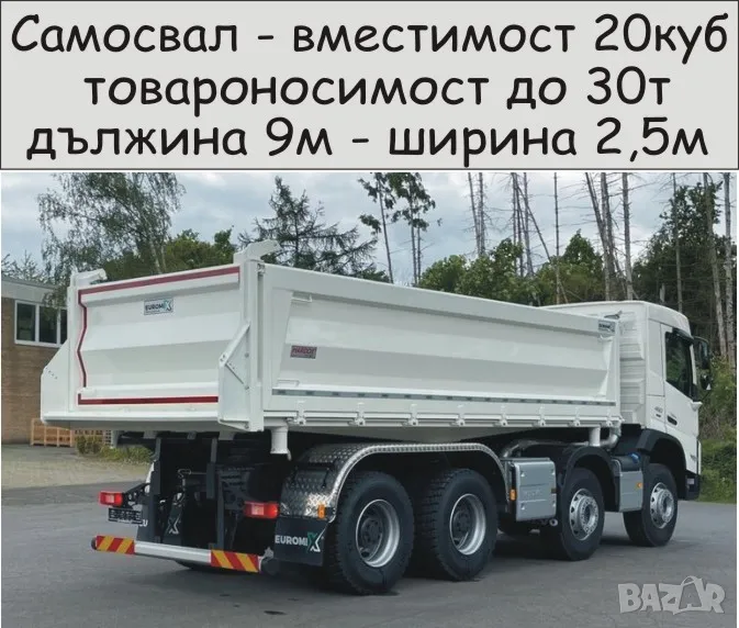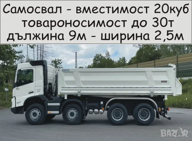 Транспорт с Камион 30 тона товароносимост САМОСВАЛ -автоматично разтоварване, изсипване на НАСИПНИ