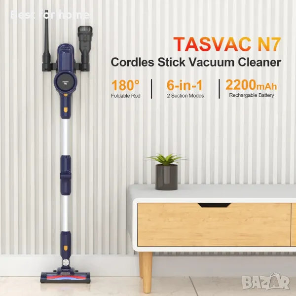 Прахосмукачката TASVAC N7 е универсална безкабелна прахосмукачка със сгъваема пръчка и 3 глави за закрепване - моторизирана основна четка за под, накрайник за цепнатини и четка 2 в 1. Той също така включва аксесоари като стенен монтаж, приспособление за почистване, допълнителен филтър и твърда ролкова четка. Лесно се сглобява и може да се използва като пръчкова прахосмукачка и ръчна прахосмукачка, работи чудесно за ежедневна употреба за почистване на косми от домашни любимци, под, кола, стълби и др.