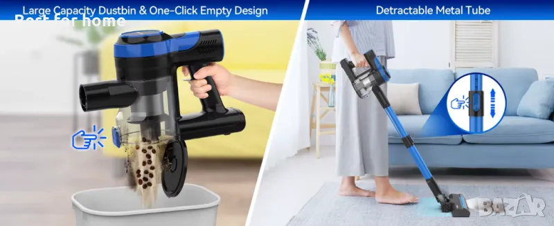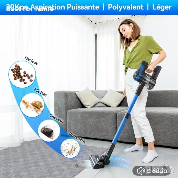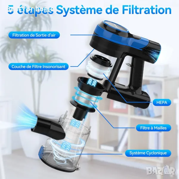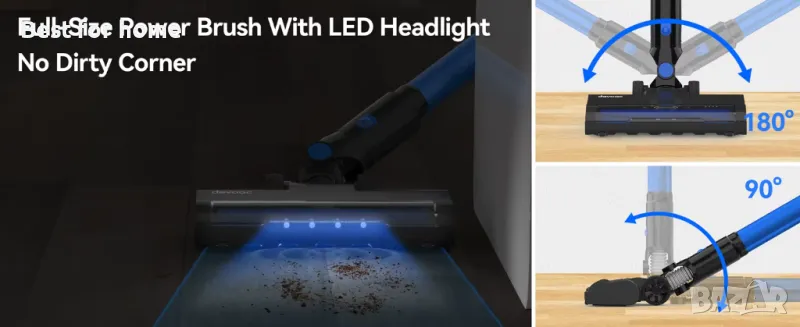 безжична прахосмукачка, комбинирана с 5-степенна усъвършенствана напълно запечатана система за филтриране HEPA и технология Cyclone, може да улови >99,997% прах и 𝙖𝙡𝙡𝙚𝙧𝙜𝙚𝙣𝙨, докато почиствате, улавяйки всички частици, които ви карат да кашляте и кихате на закрито𝙒𝙞𝙙𝙚 𝘽𝙧𝙪𝙨𝙝 & 𝙊𝙣𝙚 𝘾𝙡𝙞𝙘𝙠 𝙀𝙢𝙥𝙩𝙮: Тази прахосмукачка има надграден дизайн на четката в пълен размер и може да покрие по-широко покритие, като почиства много по-бързо от другите прахосмукачки. Плътната пухкава четка може да събира по-малък фин прах и може да бъде по-чиста от чиста. Тази прахосмукачка има 1-литров кош за прах, който се изпразва лесно, просто натиснете един бутон, за да освободите праха, който ще предпази всякакви остатъци от ръцете ви и ще ги насочите направо към боклука𝟭𝟴𝟬° 𝙍𝙤𝙩𝙖𝙩𝙖𝙗𝙡𝙚 𝘽𝙧𝙪𝙨𝙝 & 𝙀𝙧𝙜𝙤𝙣𝙤𝙢𝙞𝙘 𝙃𝙖𝙣𝙙𝙡𝙚: Безжичната прахосмукачка е оборудвана с LED светлини, осветяващи целия фин прах и косми от домашни любимци, вакуум четката може да се завърти до 180 градуса, което прави лесно придвижването около препятствията и навлизането в труднодостъпни ъгли, сега никога не пропускате нито петънце. Вакуумът завършва с ергономична дръжка, което го прави удобен за държане за дълги блокове от време𝟲 𝙞𝙣 𝟭 𝙑𝙚𝙧𝙨𝙖𝙩𝙞𝙡𝙞𝙩𝙮 𝙑𝙖𝙘𝙪𝙪𝙢: Тази универсална прахосмукачка може да се трансформира в ръчна прахосмукачка. Или удължете регулируемата тръба, за да почистите бързо прашните завеси и да изчистите паяжините от ъглите на тавана. Можете също така да щракнете включената четка 2 в 1 или инструмент за цепки, което ви позволява да влезете в труднодостъпни места и да избършете праха или да почистите космите на дивана от вашето бебе