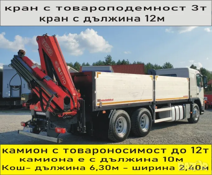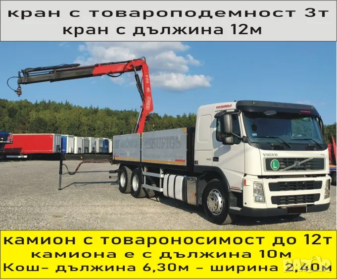 Транспорт КРАН Камион 12 тона товароносимост на камиона.. 3 тона товароподемност на крана.