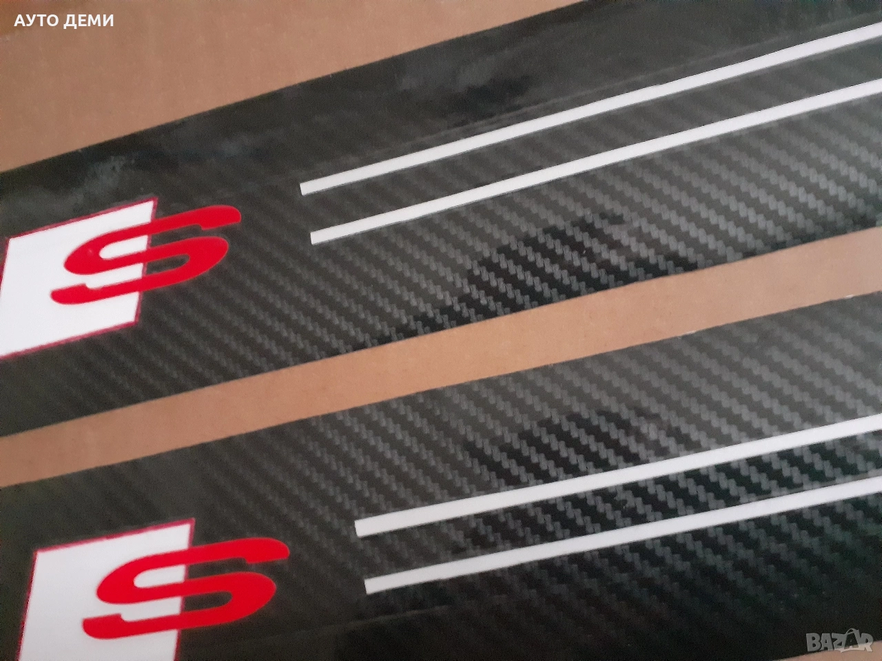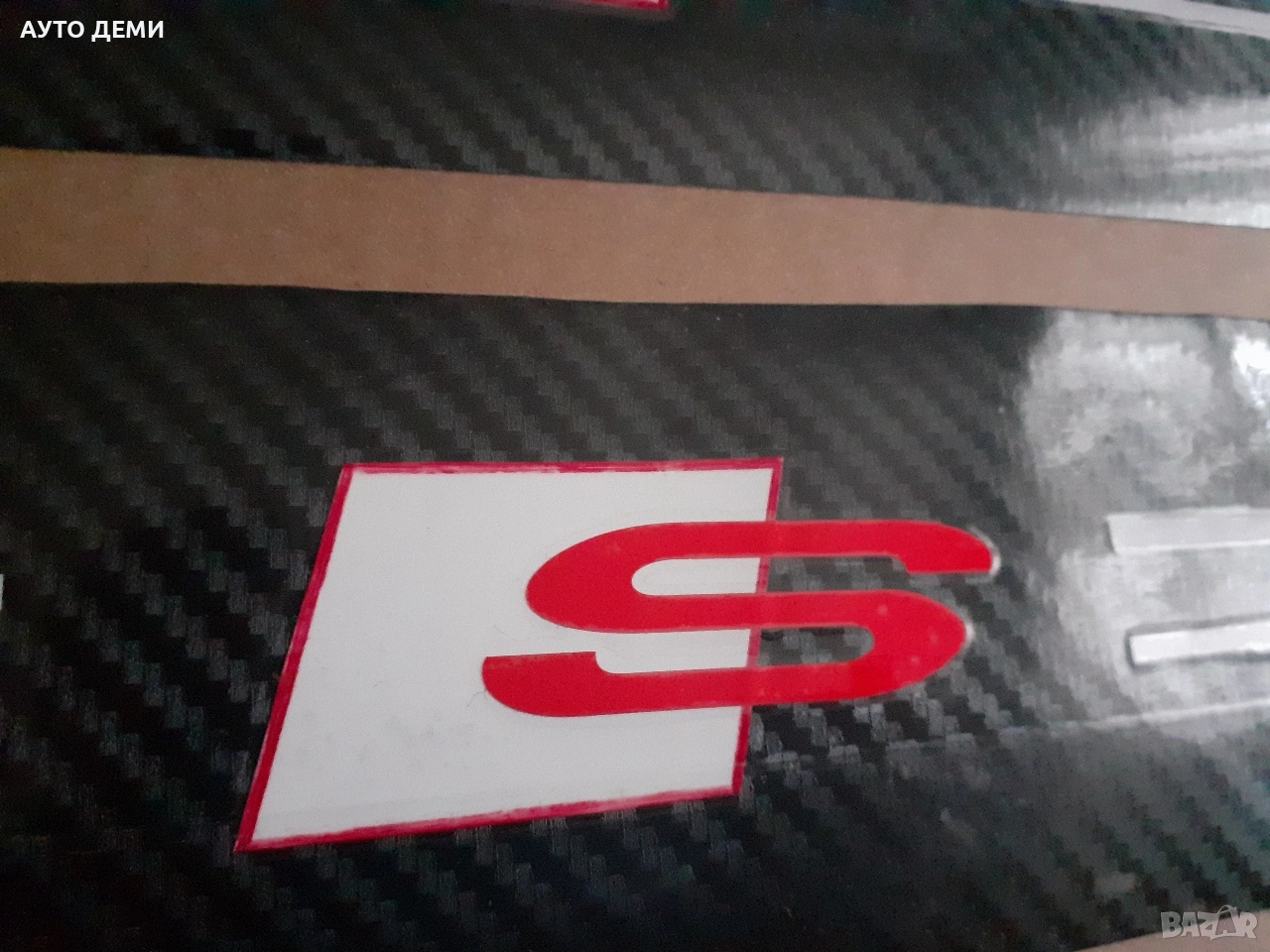 Продавам черни карбонови самозалепващи стикери за прагове и броня на автомобил с надпис "S" за Ауди С лайн .