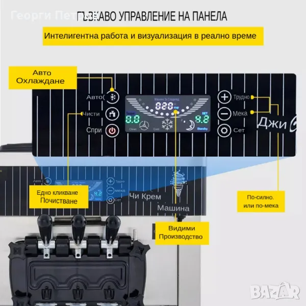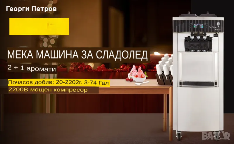 НОВА МОНОФАЗНА (ДОМАШЕН ТОК )!Професионална машина за мек ,крем сладолед 2+1 вкуса .6L висок производствен капацитет