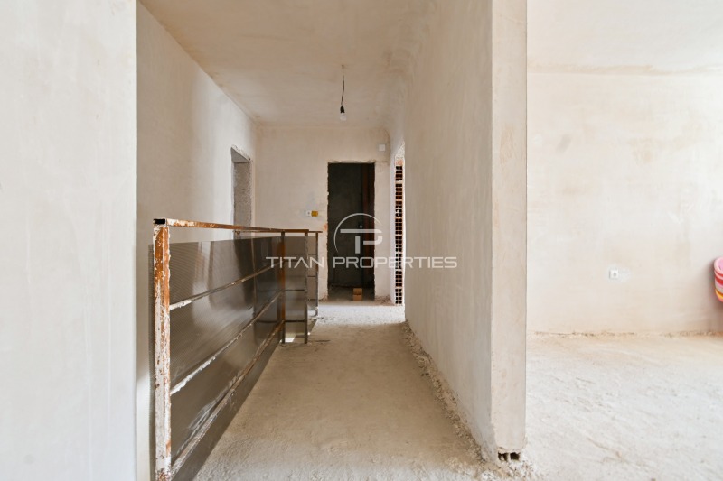 С АКТ 16! Титан Пропъртис - офис Бул.България , има удоволствието да Ви представи мезонет в ж.к. Манастирски ливади - комуникативно място , в близост до спирки на градски транспорт , магазини, детска градина, училище, медицински център, мол България и други удобства. Мезонетът е разположен на партер и първи жилищни етажи и разполага с площ от 189 кв.м. , 121 кв.м. от които-застроена площ. Разпределението както следва е : ниво 1 партер : входно антре , просторен хол с трапезария и обособен кухненски бокс , баня с тоалетна ; ниво 2 етаж 1 : коридор , четири стаи , баня с тоалетна и две тераси. Изложението е изток / юг . Отоплението е на електричество. Жилището се предлага на шпакловка и замазка, предоставяйки възможност за персонализация на интериора. Предоставя идеалната възможност за новите собственици да създадат своя уютен и стилен дом в един от най-желаните райони на градa. Сградата с Акт 16 от 2025г