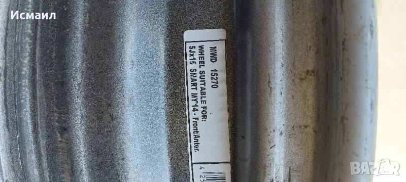 Железни джанта за Smart Fortwo, Forfour 15ц → Обява 49973981