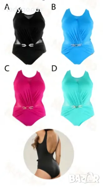 Цял бански костюм,с тюл, в 4 цвята. Горната част е със стабилна и подплатена чашка,без банел, с декорация от черен тюл.