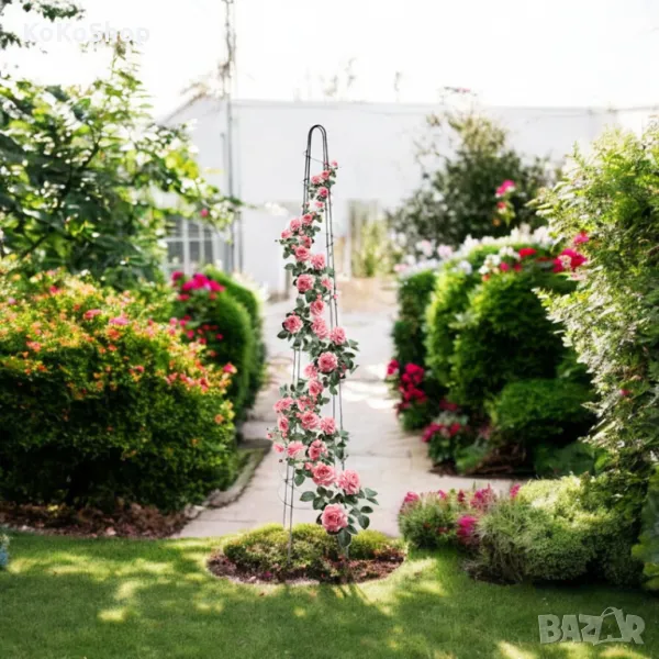 Опорите за растения осигуряват както здравословен и равномерен растеж, така и прекрасен вид и са задължителни за отглеждане на много градински, декоративни, увивни и други видове растения с тънки стъбла. Те осигуряват равномерно разпределение на светлината върху всички части на растението, което влияе положително на неговия растеж. Опората може да се монтира като самостоятелна конструкция със защитна или декоративна функция. Стоманените тръби, от които е изработена,придават здравина и дълготрайност. Праховото покритие осигурява защита от корозия и позволява използването на изделието при всякакви метеорологични условия.