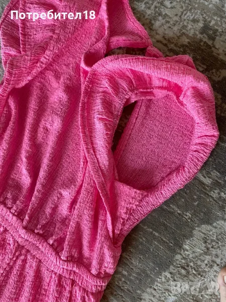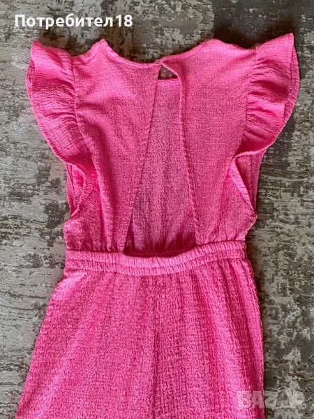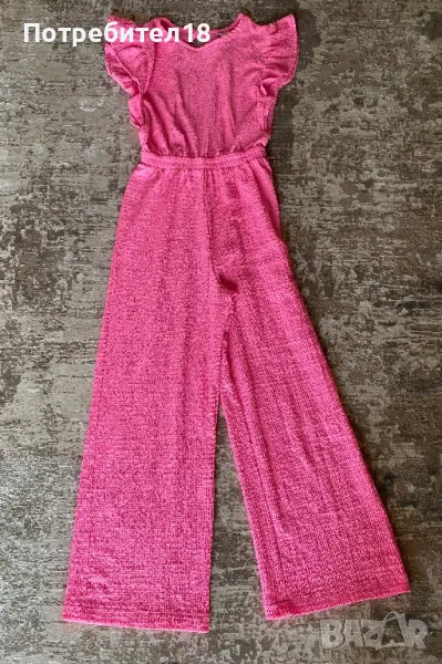 Комфортен гащеризон в ярък розов цвят. Тънка и приятна материя.
