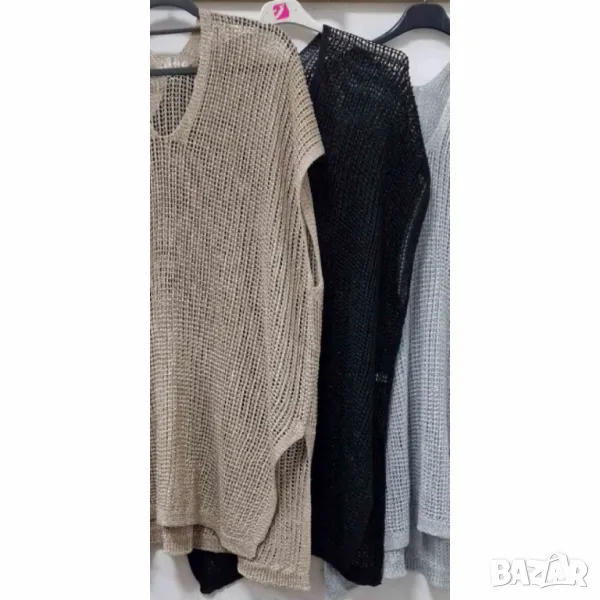 Материал: 100% памук, което осигурява естествена мекота и дишащ ефектРазмер: 56/80 (подходящ за стандартни размери на туники)Кройка: Свободна, разкроена, асиметрична с по-къса предна част и по-дълга странаДължина: Асиметрична линия с високи цепки от двете страниДизайн на деколтето: Широко, леко V-образно деколте, украсено с дантела или фин бродериран елементЦветови опции: Бежов, сив, черенСтил: Бохемски, моден и ежедневенПоддръжка: Препоръчва се деликатно пране и гладене при ниски температури, за да се запази видимостта на плеткатаПриложение: Подходяща за носене върху бански костюм, за плажни и басейнови дни, както и за ежедневни активности на открито