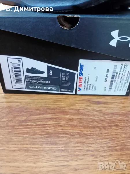 Under Armour са модел W Charged Pursuit 3 и са купувани от Intersport - предлагам ги за 70лв.