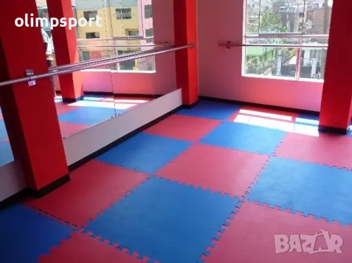Настилка татами , двупластова, изработена от висококачествен материал EVA. Подходяща за спортни зали и за домашна употреба. Може да се използва и като подложка на фитнес уреди. Цветове - двуцветна (син и червен). Съединяване тип пъзел. Цената е за 1 брой. Размери - 100х100х4 см. Тегло за 1 брой - 3.4 кг.