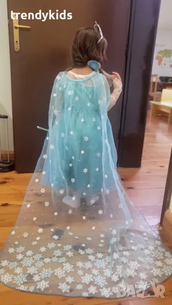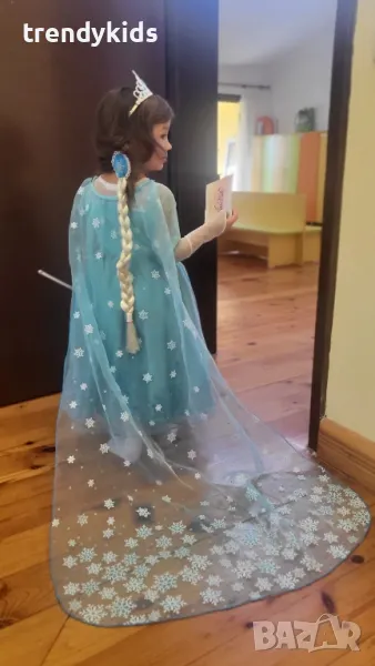 Нов модел изключително луксозна рокля на Елза, с наметало, обсипано с бляскави снежинки. Роклята е с дължина до глезена, с бюстие и ръкави от бяла, мека и еластична мрежеста материя. На гърдите има брошка във форма на снежинка, със синьо камъче в средата. Шлейфът е от шифон, връзва се отделно и е обсипан е с бляскави снежинки.НАЛИЧЕН размер 100 (97-103 см.) - дължина от рамото до долу 73 смс шлейфът 75 смръкав 37 смгръдна обиколка 60 смцена 38.00 лв . За 3-4 год.НАЛИЧЕН размер 110 ( 103-110 см.)дължина от рамото до долу 77 смс шлейфът 80 смръкав 39 смгръдна обиколка 62 см-цена 38.00 лв. -За 4-5 год.НАЛИЧЕН размер 120 (110-116 см.) дължина от рамото до долу 81 смс шлейфът 85 смръкав 40 смгръдна обиколка 74 см- цена 38.00 лв. - За 5-6год.НАЛИЧЕН размер 130 (116-122см.) - цена 38.00 лв. - За 6 год.Дължина от рамото до долу- 90 см. Със шлейфа 95 см.Гръдна обиколка- 66 см.Ръкав- 42 смНАЛИЧЕН размер 140 ( 122-128см.) - цена 38.00 лв. - За 7-8 год.Дължина от рамото до долу- 92 см. Със шлейфа 99 см.талия - 68 смГръдна обиколка- 68 см.Ръкав- 44 см.НАЛИЧЕН размер 150 ( 130- 140 см.)- цена 38.00 лв. -За 9-10 год.НАЛИЧЕН размер 160 ( 140- 150 см.)- цена 40.00 лв. -За 9-10 год.Роклята е стандартна, подходяща за слабо и добре сложено дете!!! Към нея могат да се добавят следните комплекти аксесоари:КОРОНА, ЖЕЗЪЛ, ПЛИТКА И САТЕНЕНИ РЪКАВИЦИ С ОРНАМЕНТ -22.00 лв.КОМПЛЕКТ ЛУКС- КОРОНА, САТЕНЕНИ РЪКАВИЦИ С ПАНДЕЛКИ И КОЛИЕ С КРИСТАЛНА ПАНТОВКА- 24.00 лв.Бял чорапогащник Маги 30 DEN- 2.00 лвБЛЯСКАВИ ПАНТОФКИ НА ЕЛЗА НА ЛЕКА ПЛАТФОРМА (материал силикон - удобни и ергономични) - 23.99 лв.Размери :25- стелка 15.5 см26- стелка 16.0 см27- стелка 16.5 см28- стелка 17.0 см29- стелка 17.5 см30- стелка 18.0 см31- стелка 18.5 см32-стелка 19.0 см33-стелка 19.5 см34-стелка 20.0 см35-стелка 20.5 см36- стелка 21.00 см37- стелка 22.00 см.ПЕРУКА НА ЕЛЗА- 25.00 ЛВ.Не се притеснявайте, че точния размер на детето няма да бъде преценен. ОТБЕЛЕЖЕТЕ В ПОРЪЧКАТА РЪСТТА И КИЛОГРАМИТЕ на детенцето и ние ще ви изпратим подходящия РАЗМЕР!!!Аксесоари за Елза , поръчани отделно имат следните цени :КОРОНА-5.00лв.ЖЕЗЪЛ- 6.00 лв. САТЕНЕНИ РЪКАВИЦИ С ОРНАМЕНТ- 10.00 лв.САТЕНЕНИ РЪКАВИЦИ С ПАНДЕЛКА ДО ЛАКЪТЯ - 12.00 лв.КОЛИЕ С КРИСТАЛНА ПАНТОФКА-7.00лв.ПЛИТКА - 9.00 лв.Тел. за връзка 0894 237 167 Доставка до офис на Еконт с 18% намаление - 5.90 лв. Доставка до адрес- 8.00 лв.Поръчки, направени след 16.00 ч. се изпълнява на следващия работен ден и достига до посочения от вас офис на Еконт на по- следващата сутрин.Разгледайте още наши предложения за парти костюми в другите ни обяви!