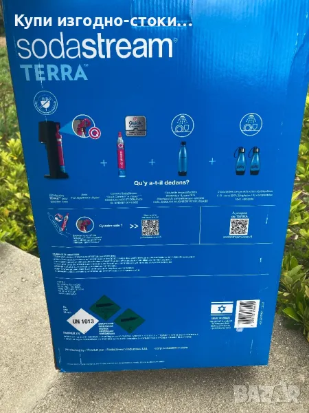 SodaStream Terra. Цвят на продукта: Черен, Материал на бутилката: Пластмаса. Обем на бутилката за газиране: 1 л, Капацитет на зарядното устройство за карбонатор: 60 л. Ширина: 134 мм, Дълбочина: 198 мм, Височина: 430 мм