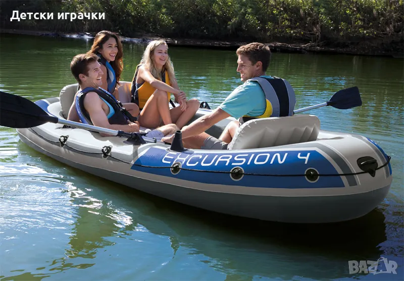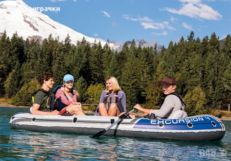 Надуваема лодка Excursion 4 Intex, 4 места, 315х165 см, риболов и къмпинг,сива