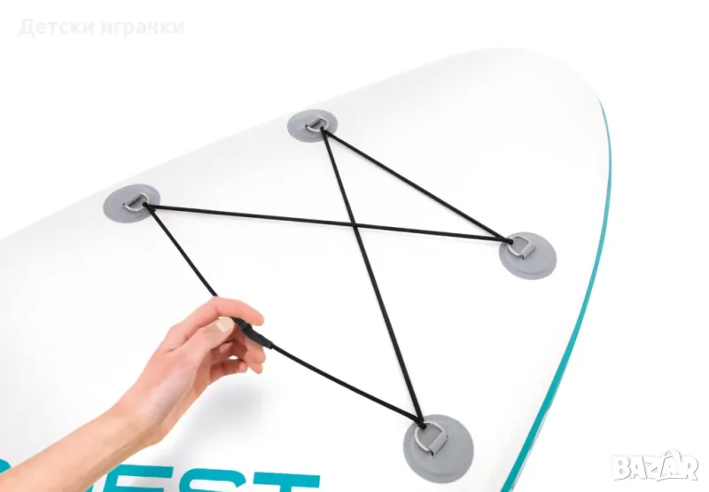 Включва всичко необходимо: Суп борд, гребло, специална помпа и чанта за носене