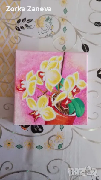 Картина,рисувана на платно.Размери 20/20 см.Рисувана е от натура,и на ръка,с хубави акрилни бои.
