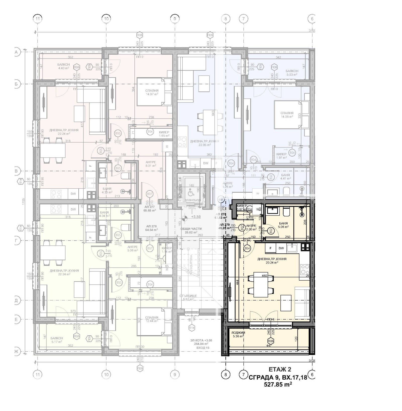 Етап 1 - Ще се състои от 9 сгради, с различна етажност и разположение. Във всяка сграда ще има функционални разпределения на 1-стайни, 2-стайни, 3-стайни и 4-стайни жилища, като всички ще имат уникална глекда още от приземен етаж.
