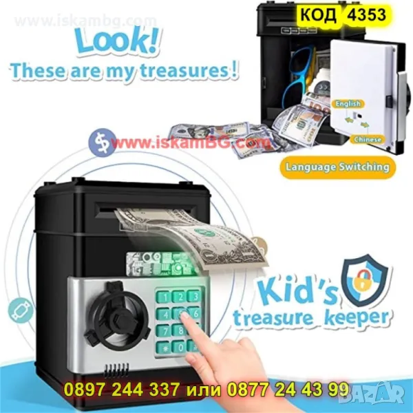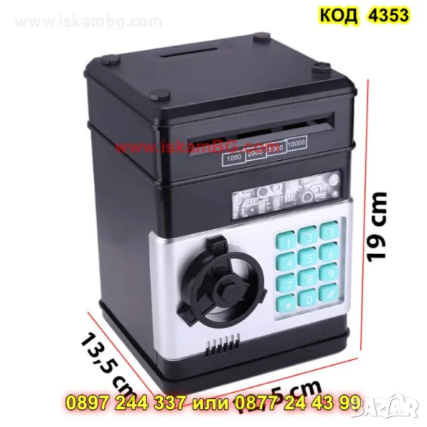 1 брой касичка сейф с ПИН код за монети и банкноти.