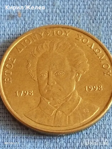 Монета 50 драхми 1998г. Гърция 200г. От рождението на Дионисиос Соломос 50048