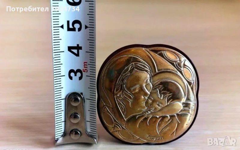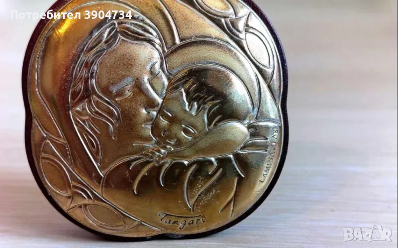 Сребърна икона на Дева Мария с Младенеца.На дървена основа с красива стойка.Налична маркировка.Елегантна изработка.Внос Италия.