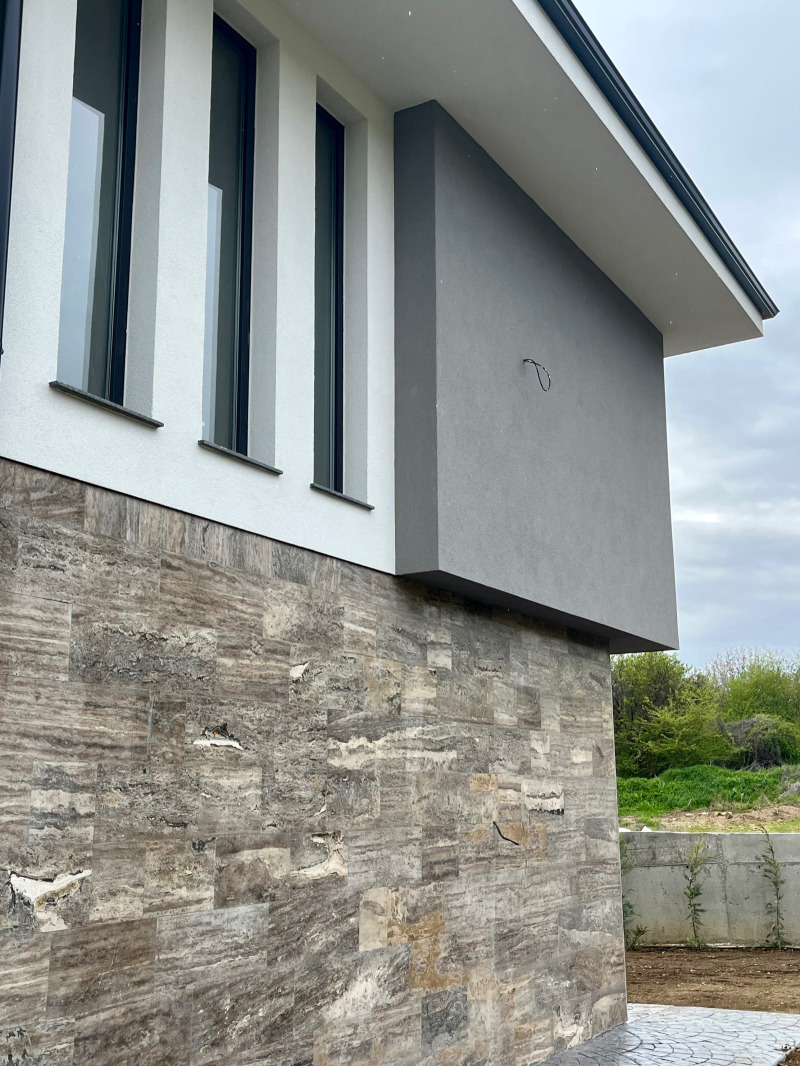 - II етаж: три самостоятелни спални (едната с дрешник и баня), баня и тоалетна, сервизно помещение, веранда.