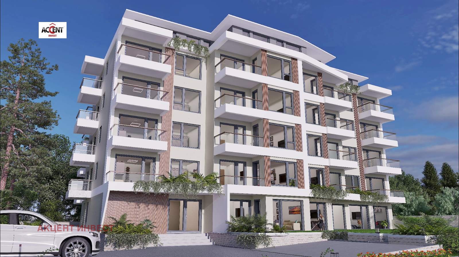 Сградата се състои от двустайни, тристайни апартаменти и студиа, разположени на партер и пет надземни етажа. Жилищата на партерния етаж разполагат със самостоятелни дворчета (тип английски двор), а апартаментите на по-горните етажи с по една тераса. Всички жилища са ориентирани на юго-изток, с гледка към морето. Степен на завършеност: БДС