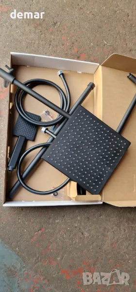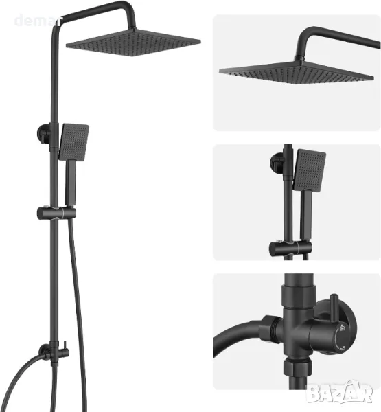 Комплект душ с регулируема релса DERW, с квадратна глава тип „Rainfall“ 25 см, черен