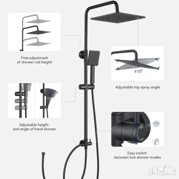 Този комплект за душ тип „тропически дъжд“ разполага с 25-сантиметрова ултратънка глава със 196 водни отвора за равномерен и мощен поток, съчетана с устойчиво на корозия, галванизирано покритие, което е лесно за почистване. Изработен от висококачествена мед по европейски стандарт, той е проектиран за дълготрайна употреба и е преминал 24-часов тест в киселинна солена мъгла. Регулируемата повдигаща се греда варира от 65 до 110 см, което я прави идеална за потребители с различна височина и компактни пространства. Многослойната хромирана повърхност предлага елегантен, отразяващ вид, който е устойчив на износване, а ръчната душ глава от ABS включва регулируем на 90 градуса държач за допълнително удобство и гъвкавост.