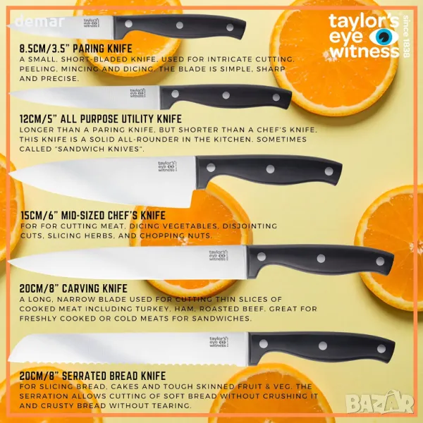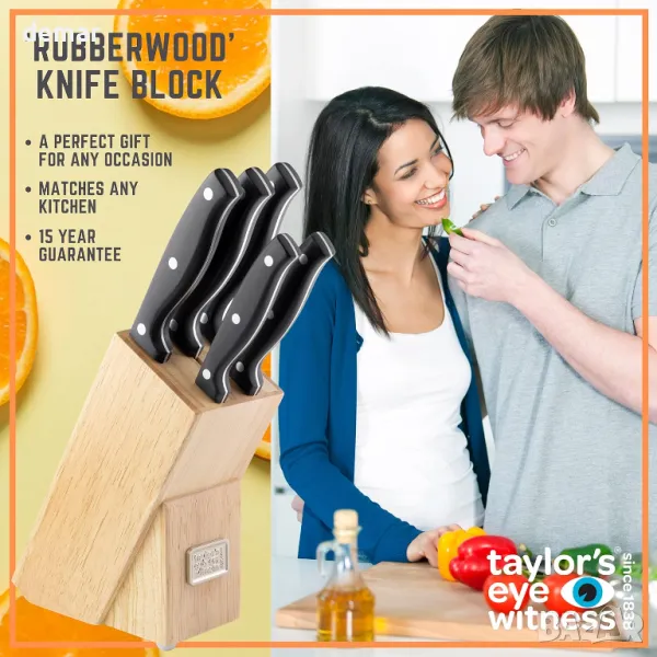Комплект ножове от 5 части с компактен дървен блок Taylors Eye Witness