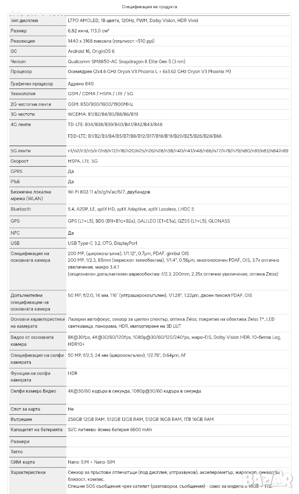 Китайска мултиезична версия, разпечатана кутия за инсталиране Гугъл плей стор (без меню на български език на Андроид), с Android auto, евро адаптер за зареждане и гръб протектор в комплекта и 2 години гаранция към българския сайт Get Mobile. Апаратите имат 5G band20, 800mHz.
