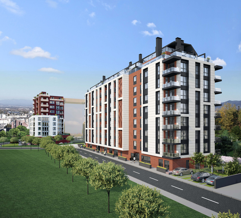 - Модерна окачена вентилируема фасада с Laminam или HPL панели с комбинация с модерни декоративни тухлички.