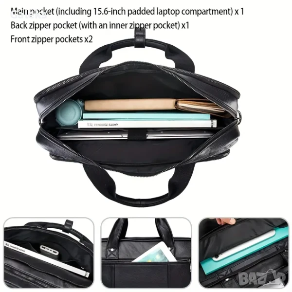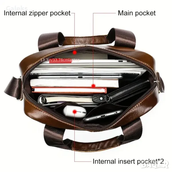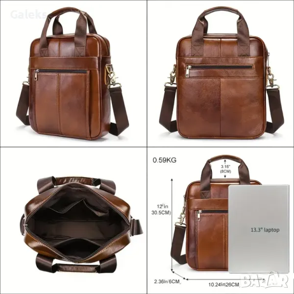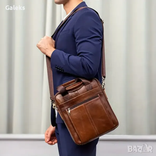 Мъжки, Елегантен и универсален бизнес Кежуал за през рамо от естествена телешка кожа!