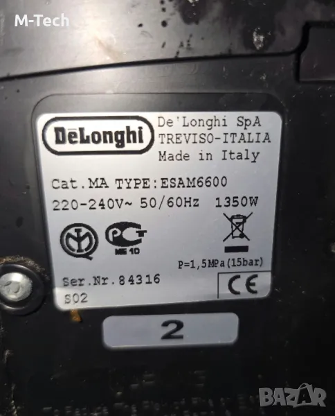 Напълно автоматична кафемашина от висок клас марка DeLonghi, модел PrimaDonna ESAM 6600. Обурудвана с накрайник за пара и гореща вода. Работи с кафе на зърна, както и със предварително смляно. Прави Еспресо, Капучино, Лате Макиато и др. само с едно докосване.