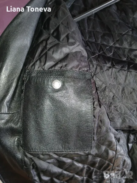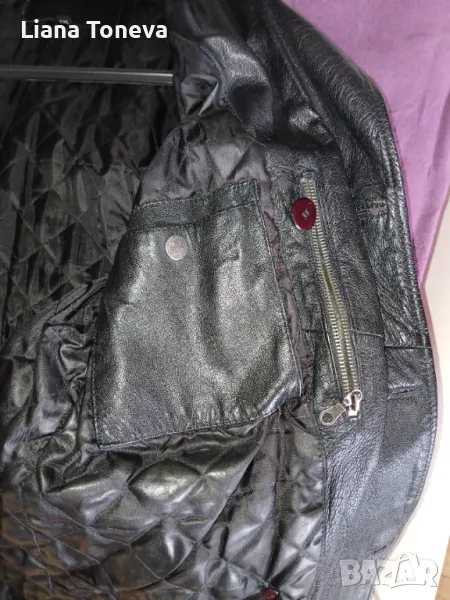 Мъжко черно яке от естествена кожа, с подплата,вътрешни и външни джобове с цип, дължина-68см,гръдна обиколка-116см.