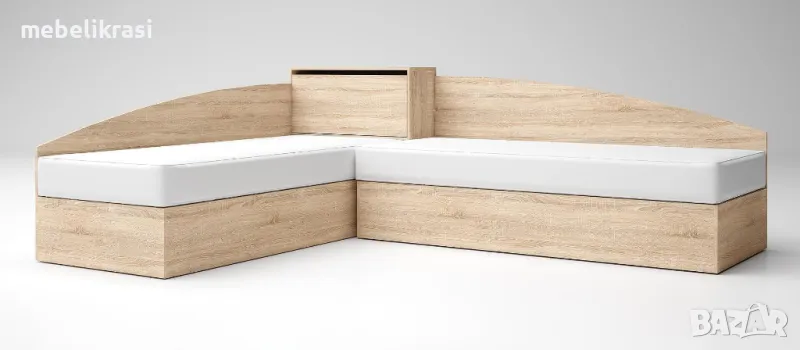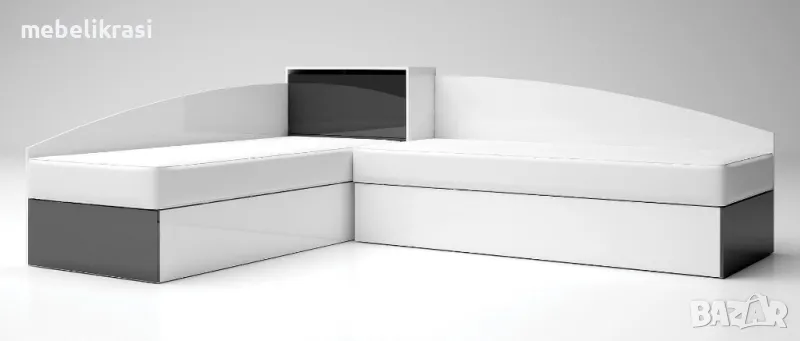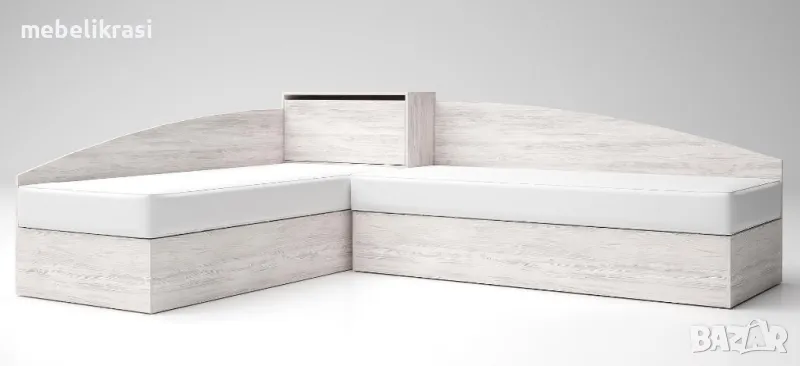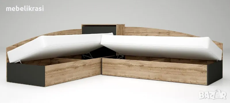 Ъгловите легла са оборудвани с: матраци, ракла с предно отваряне и повдигащи механизми, разкриващи подматрачни пространства с делител.