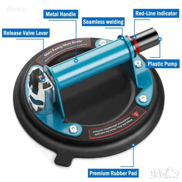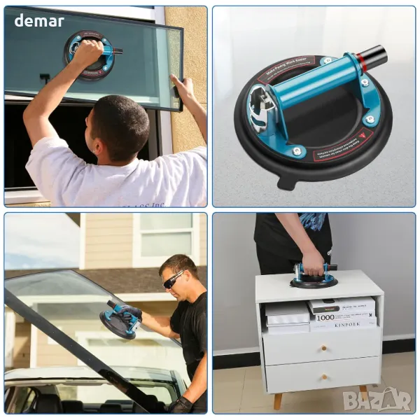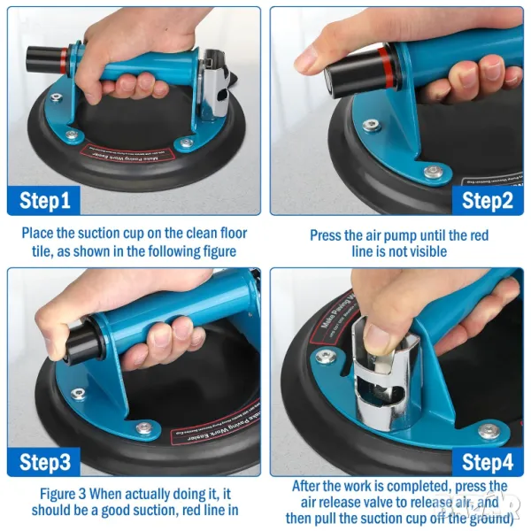 Тези здрави вендузи за стъкло са с издръжлива, удебелена изцяло метална дръжка за здрав захват и дълготрайна употреба, дори при многократна работа с висока якост. Те повишават безопасността и ефективността при повдигане или монтаж на стъкло, плочки, метал и други материали с гладка повърхност. Идеални са за работа с големи или неудобни предмети в строителството или домакинските задачи, лесни са за работа с ръчна помпена система с червен индикатор за безопасност и бързо освобождаващ се клапан. Най-добре се използва върху чисти, сухи, равни повърхности - избягвайте грапави или мазни повърхности за оптимална всмукателна мощност.