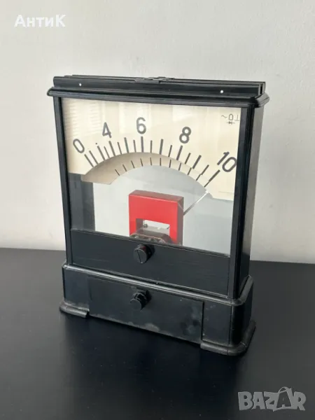 Стар учебен измервателен уред в отлично запазено състояние. Без липси! Изработен от бакелит. Единствена лека забележка, на една от скалите се е пропукала боята.