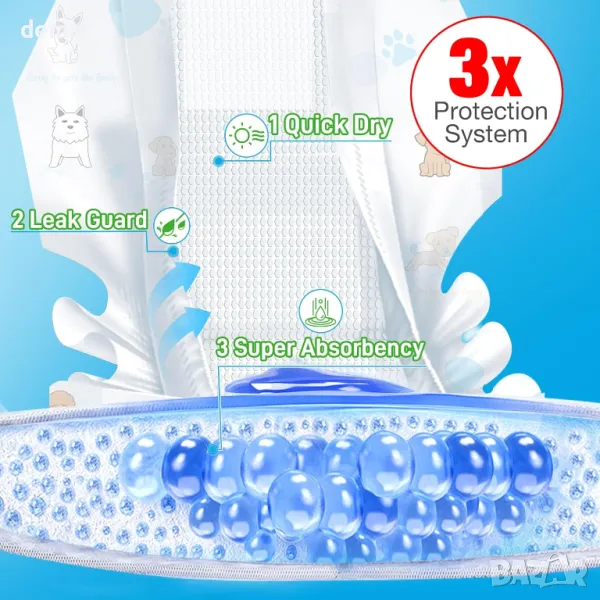 Тези нощни пелени за мъжки кучета предлагат 25% по-голяма абсорбция за защита от протичане през нощта, като помагат за поддържане на чисти подове и намаляват почистването. Проектирани с влагоабсорбираща подплата, те абсорбират течността бързо, за да поддържат кучето ви сухо. Ултратънкият, дишащ материал и мекият горен слой осигуряват комфорт и предотвратяват протриване по време на движение. С регулируеми закопчалки тип велкро, те са лесни за поставяне и сваляне, без да се изисква пране. Идеални за възрастни кучета с инконтиненция, недресирани кученца, нощни инциденти или поведение при маркиране.