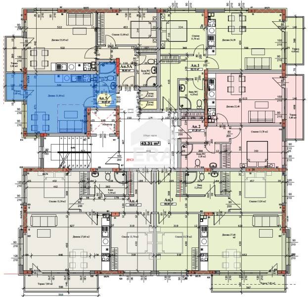 Апартаментът ще е със застроена площ от 36,40 кв.м и обща площ 42,10 кв.м, ще бъде функционално разпределен по следния начин: