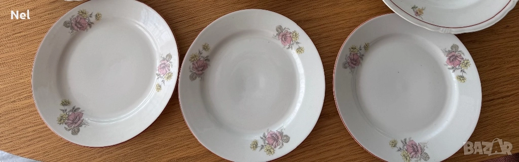 🍽️чинийки костен порцелан 6бр. и захарничка от завод Коста Йорданов-Видин.Захарничката има лека забележка на отвора- 6€ общо