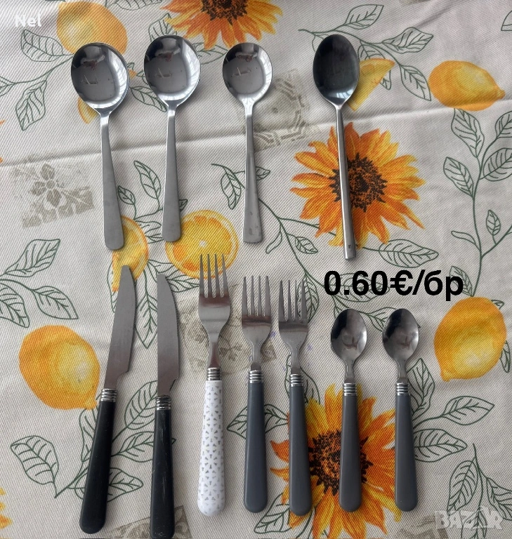 *Прибори с неметална дръжка- 2 ножа, 3 вилици и 2 лъжички. -по 0.6€