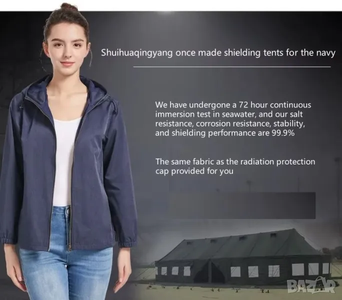 В епоха, в която технологиите се превърнаха в неразделна част от нашето ежедневие, необходимостта от защита срещу електромагнитно излъчване (EMR) никога не е била толкова належаща. Защитното от електромагнитно излъчване яке с качулка от метални влакна е революционна дреха, предназначена да Ви предпази от вредните ефекти на електромагнитните полета. Това яке с качулка включва уникална комбинация от 30% метални влакна, 50% памук и 20% полиестерни влакна на външния слой и 100% полиестерни влакна на вътрешния слой, осигурявайки несравнима защита в широкия честотен диапазон от 2GHz до 100GHz. Високата проводимост на тъканта и ефективността на екраниране гарантират, че тялото Ви остава защитено от вредното лъчение, излъчвано от електронни устройства, като компютри, телевизори и мобилни телефони.