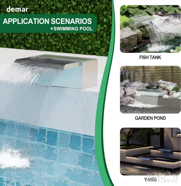 Водопад от неръждаема стомана 60 см, фонтан от неръждаема стомана с ширина 12,2 см с аксесоари