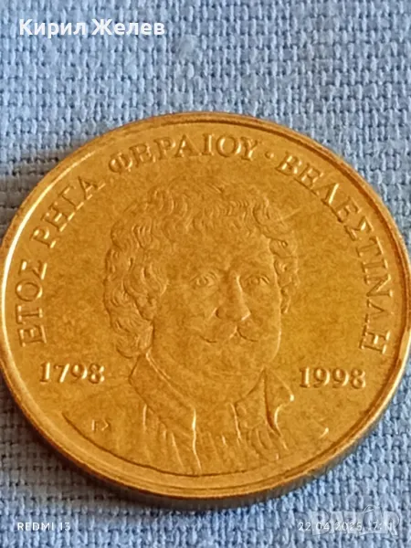 Монета 50 драхми 1998г. Гърция 200г. От смъртта на Ригас Валентинлис Революционер 26443