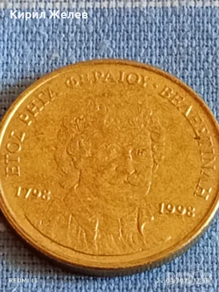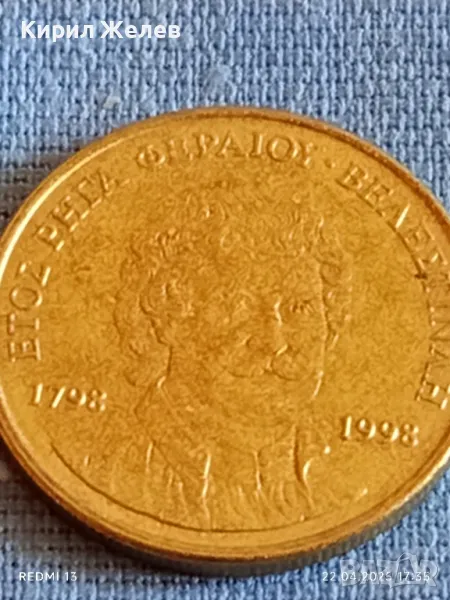 Монета 50 драхми 1998г. Гърция 200г. От смъртта на Ригас Валентинлис Революционер 34944