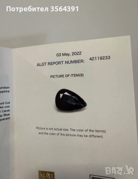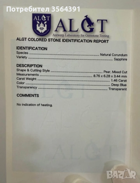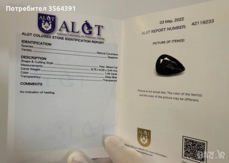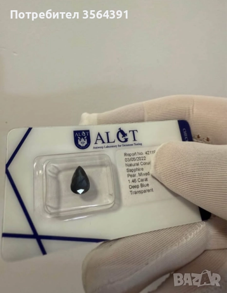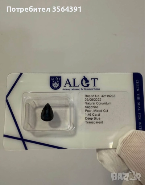Сапфир 1.46кт сертификат и капсула → Обява 49992246