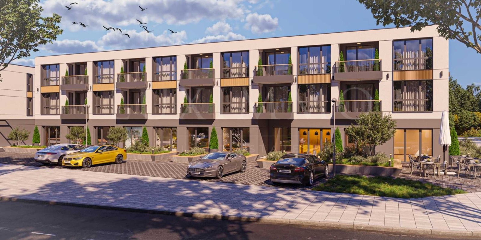 Комплексът предлага студиа, двустайни, тристайни апартаменти, търговски обекти, паркоместа и гаражи.
