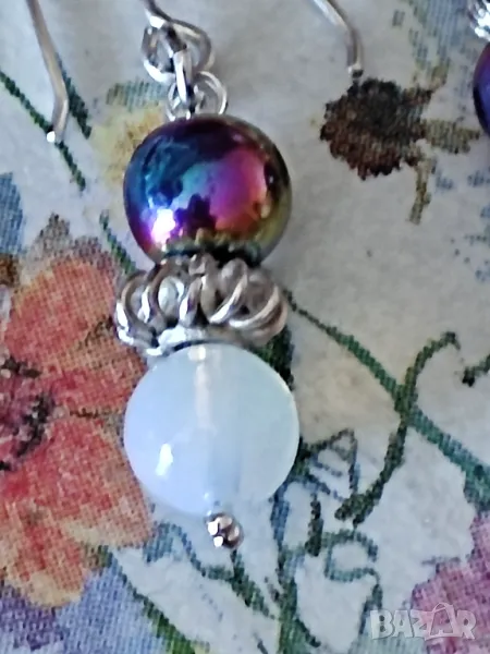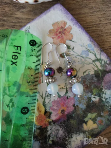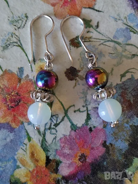 Сребърни обеци с опалит и титаниев хематит → Обява 49992703