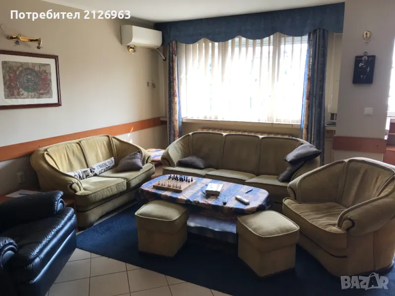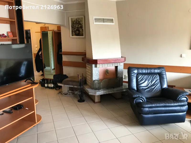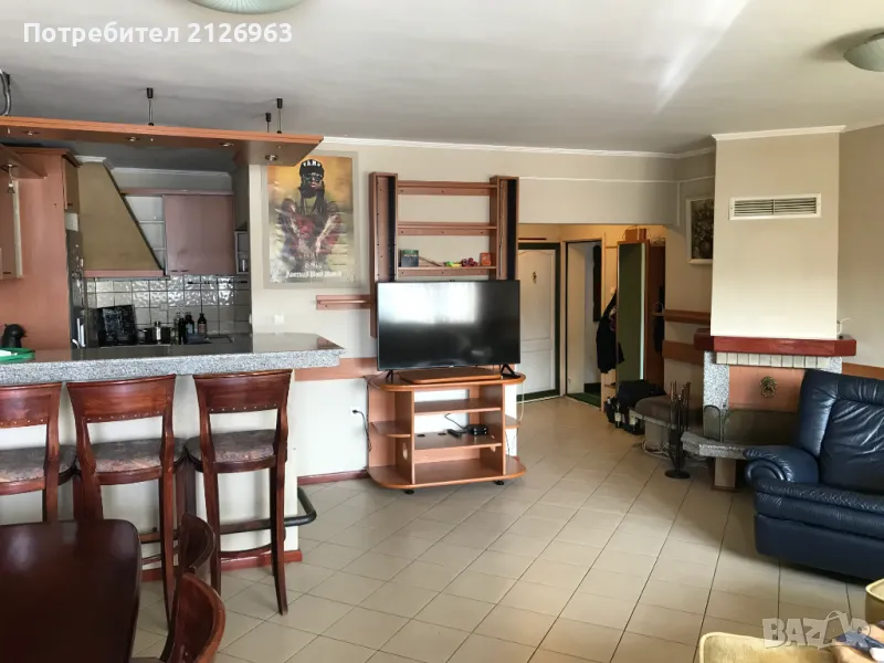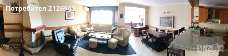 кухненски бокс с бар-плот, трапезария, хол с камина и работен кът. Помещението