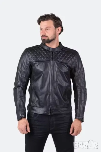 Ново мъжко кожено яке, размер "М". Якето е с "CE" сертифицирани протектори на лакти и рамене. Стилно и елегантно, става и за ежедневно носене.